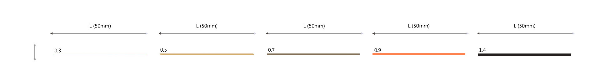 Disponible en 9 diferentes granos fácil de identificar por un código de colores.