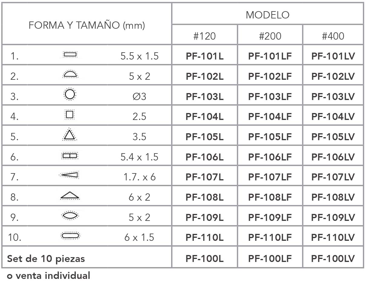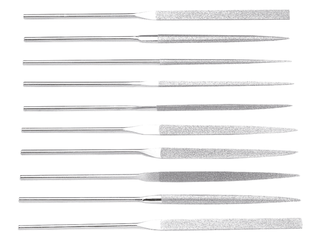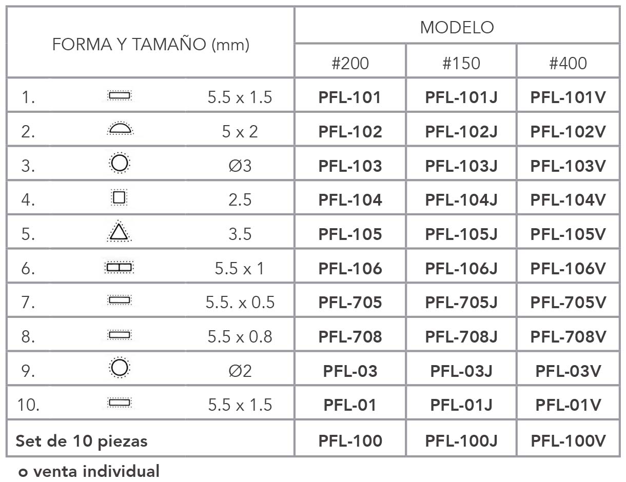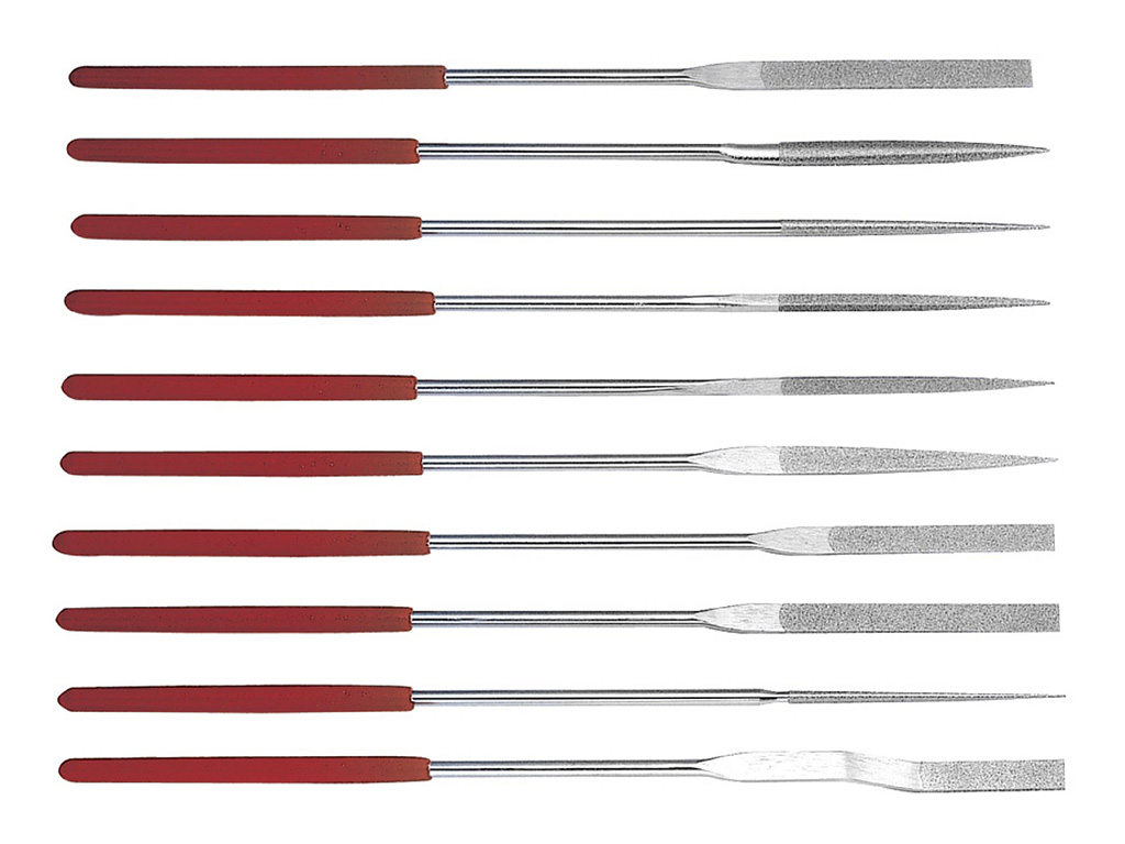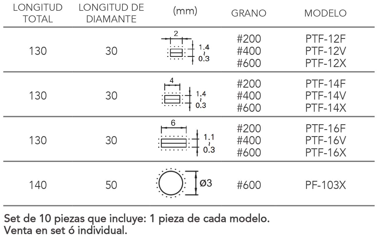 Lima de diamante PFL-100 SET - Longitud total: 180 mm, vástago: Ø 3.0 mm con cubierta de vinil, longitud de diamante: 25 ~ 50 mm.