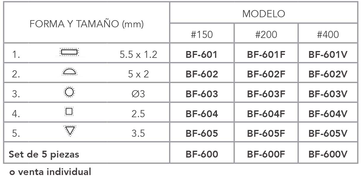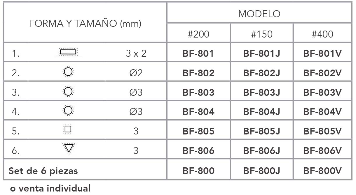 Lima de diamante BF-800 SET - Longitud total: 155 mm, vástago: Ø 3.0 mm, longitud de diamante: 20 ~ 30 mm.
