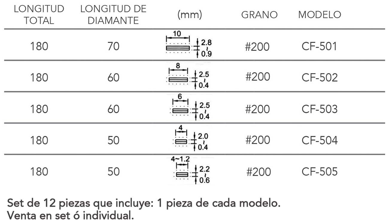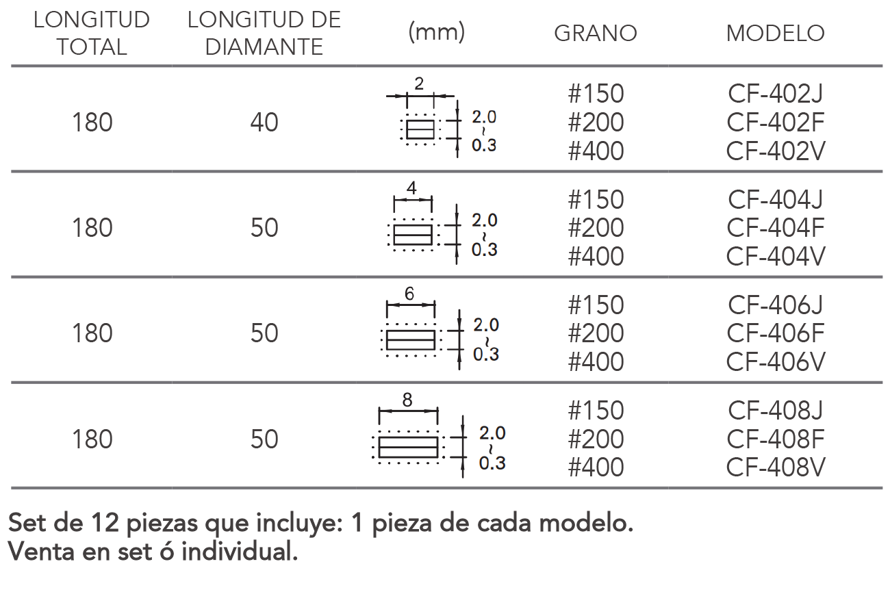 Lima de diamante CF-400 SET - Longitud total: 180 mm, longitud de diamante: 40 ~ 50 mm.